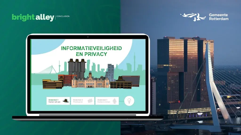 “Samen met onze inhoudelijke deskundigen en de leerconsulenten van Bright Alley zijn we er in geslaagd een e-learning te ontwikkelen waarin elk informatieveiligheids- en privacyonderwerp vanuit een sterk onderliggend creatief concept wordt neergezet. Onze collega’s worden vanuit hun eigen wereld en de wereld van (de gemeente) Rotterdam direct en met een gepaste knipoog aan het denken én handelen gezet zonder daarbij de serieusheid van het onderwerp teniet te doen.”