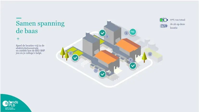 In de escaperoom vragen we de medewerker om diverse locaties in een fictieve energiecentrale ‘vrij te spelen’ door het uitvoeren van opdrachten en het vinden van de juiste items om zijn werk veilig uit te voeren voor de medewerker zelf en zijn collega’s. Deze items hebben raakvlakken met het werken met of in de nabijheid van elektrotechnische installaties. Door gebruik te maken van video en 3600 -afbeeldingen kan de eindgebruiker daadwerkelijk de energiecentrale verkennen.