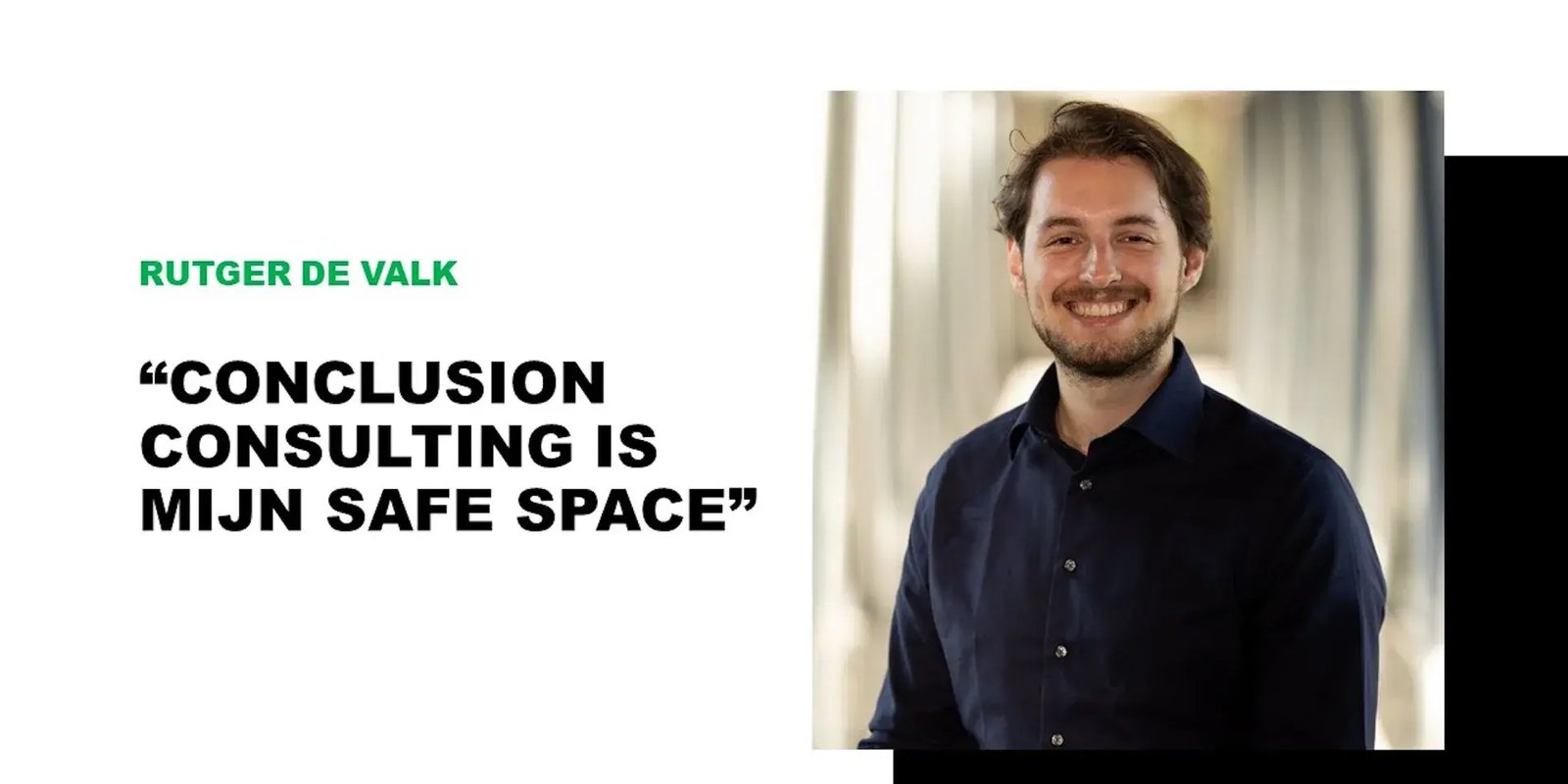 “Als ik kijk naar de professional en persoon die ik nu ben ten opzichte van honderd dagen geleden, dan ken ik mezelf bijna niet meer terug. Ik ben ontzettend gegroeid: in hoe ik problemen analyseer, in hoe ik een route uitstippel, in hoe ik met stakeholders omga … Ik hoop dat ik op deze manier kan blijven groeien binnen Conclusion Consulting. Ik ben best ambitieus, maar wel vanuit de waardegedreven kant. Ik hoef niet per se promotie te maken, maar ik wil waarde kunnen leveren en nuttig zijn. Gelukkig krijg ik daar alle ruimte voor, ook om iets te doen met de gekke ideetjes die in mijn hoofd zitten. Ik hoop dan ook nog lang onderdeel te mogen blijven van deze ontzettend gave club.”